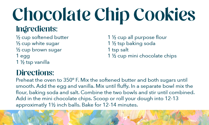 Bake cookies using the enclosed recipe or make a treat using any other recipe you’d like. If you don’t enjoy baking, buy candy/treats you know your neighbor or friend would like. Put them in the provided treat bags.